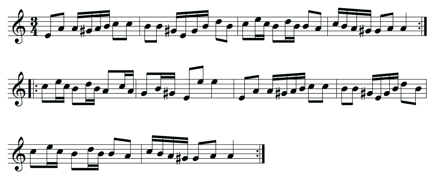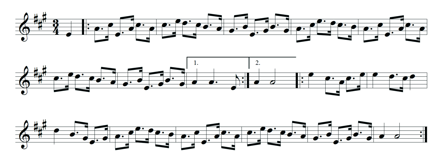 Incidentally, this seems to be one of those tunes shared by the cultural DNA of many, if not most, musical cultures. I’ve played this tune for Germans, Czechs, Scots, Englishmen, French, Canadians, Danes, Belgians… and everyone says it reminds them of a similar tune from their place! Well, since Douglas Adams claimed that every culinary culture has their own version of meatballs, maybe the same goes for music! So, while Västgötavalsen may not be “typically Swedish” (whatever that is), another tune from the same source certainly sounds more exotic.