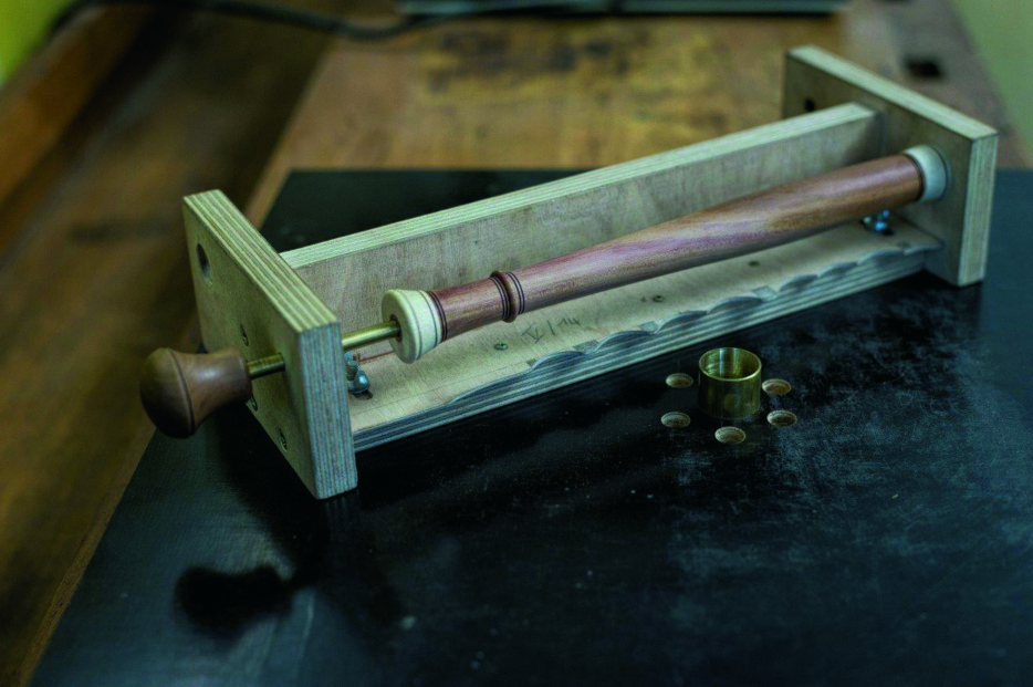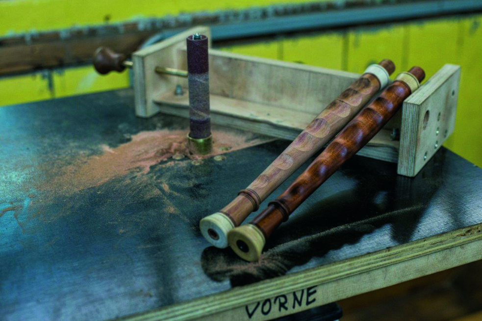 The manufacturing process itself is quite easy: Put the chanter into the jig, switch on the sander and start grinding the scallops. The grinding process is finished when the template, which is attached to the bottom of the jig, touches the tube around the sanding drum. One of the advantages of this jig is also that you could use a prototype chanter as a template.