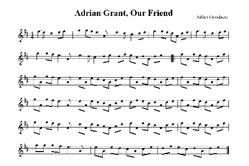 This August I was staying with my friends Matt and Carolyn Buckley, in Richmond, Vermont, USA, when my wife Pat Skyped me to let me know that our friend Adrian had died. We knew that he had terminal cancer, so it did not come as a surprise. He was a lovely man and my heart went out to his wife Frances and his family. I walked down to the river, feeling sadness and loss. I went for a swim, felt the cool water and gave thanks and gratitude for the precious gift of my life. That was on Sunday 16th August 2015. osing a tune and, unusually for me, I could remember nearly every note. I went out into the garden, set my camera to video and hung it around my wrist while I recorded the basic tune. I called it Adrian Grant, Our Friend and over the next few days I played and refined it. Later in the week Callum Armstrong and Rick Damon wrote it out for me and I had 100 copies printed to give away the following weekend at The Pipers Gathering. This is a mecca for all ‘alternative pipers’ in the USA and I have often attended it over the past 21 years. Years ago it took place on the island of North Hero in lake Champlain. Now takes place in an old nunnery, now used as a retreat centre, in Litchfield, Connecticut.