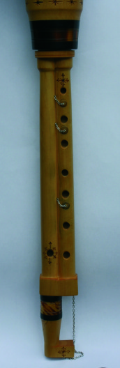 The modern boha is pitched in G (6 finger note). It is a double pipe with the chanter (pihet) and drone contained in one piece of wood The parallel drone (contra) can alternate between 2 notes by use of the right hand little finger - G unison and either D or E below the G, depending on the setup of the brunider, a short removable extension to the contra. With my boha, rotating the brunider opens a hole to sound E. Turn it 90 degrees and it plays D. With other makers, the E is obtained by completely removing the brunider, which is chained to the bottom of the pihet. The pihet is parallel bored, uses closed fingering and has a range of one octave plus F# leading note. There is also the option to have up to 3 alternative fingerholes, similar to those employed in the Swedish sackpipa, which can be plugged, giving B or Bb, E or Eb, top F or F#. This means that I can play easily in G major, G minor, E minor, C major, C minor, with certain limitations, given the range.