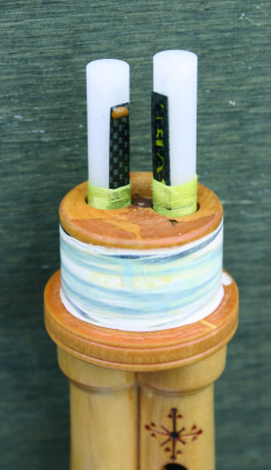 The reeds are carbon fibre, mounted on plexiglass bodies and very stable. Tuning the pihet and contra is critical and this is achieved by sliding the reed body further in or out, until the two are in harmony. There is a technique, which requires some patience, but fortunately this is not something that needs doing very often, due to the inherent stability of the reeds.