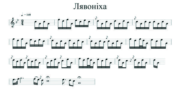 There are surviving historical musical transcriptions of the scale and tunes of a Dudar called G. Slavchik, made by E. Gyppius and Z. Evald in a place called Garadok in the Vitebsk region of Belarus in 1931. The interval Region, Belarus, 1928 between the chanter and drone’s tone equaled to duodecimo. Closed fingering was used. A similar scale is still used today.
