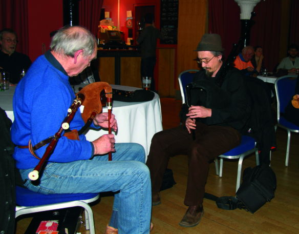 After Saturday evening’s dinner, the National Piping Centre’s hall transformed into a dance hall as young Glaswegian musicians regaled us with a ceilidh, followed by a ‘Bring your own Bagpipe’ session, a title imagined by Vivien Williams from Glasgow University. The South-Western French contingent (Yan Cozian, Jean-Michel Espinasse and, of course, Ian Clabburn) opened the session with a couple of songs before handing over to the rest of the pipers. We made the most of the cheap (and excellent) whiskey while we listened to Andy 14