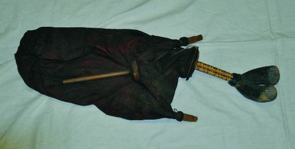 A casual visitor to the Bate Collection, University of Oxford, would probably be overwhelmed by the vast number of musical instruments that form the permanent display. There are over 2000 items in the Collection, including an array of orchestral woodwind, brass, some strings and percussion. The instruments exist as an evolutionary display, arranged to demonstrate the various technical changes through the many years of instrument development. A bagpipe person might rightly feel a little disappointed that bagpipes, as a classification of instruments, have so little representation in the Collection. This is not due to some innate curatorial prejudice rather being a result of the way the collection has been amassed over the last several decades, being originally from the collections of specialist in other areas. Accordingly, bagpipe collections had gone to other museums. Having said that, the Bate does have a modest, representative selection of complete instruments plus practise chanters and other components. The list includes a Tunisian Zukra, an Eastern Ukrainian Duda, a Flemish-style Dudelsack and a Gaita Gallega from Santiago de Compostella.