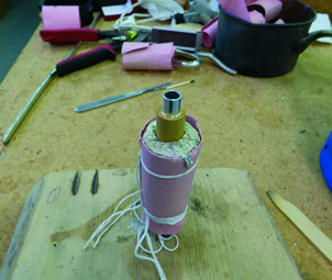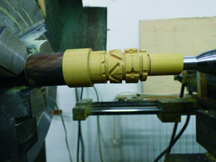 As picture 1 shows, once the wooden part is finished – here a blowpipe – I draw the chosen pattern, corresponding to the path molten pewter will follow, with a pencil.