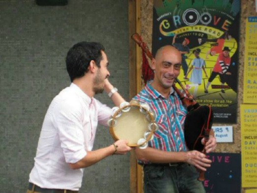 In London I have also had the chance to play with people from very different cultures such as participating in Irish sessions, in Scottish parades or in Arabic weddings, and I’m also playing with other musicians in other kinds of styles, like flamenco and Latin music, using the gaita and the Irish whistle. What I found amazing was how, in London, how interested people were in me and my bagpipes, and how easy was to get performances once you got known. Here I found that bagpipes can be used in all types of music, not only in the Galician tradition, but the sound of the gaita can also be adaped to play flamenco and other rhythms. I have a project called Spontaneous, with features a guitar player from Orihuela, in the southeast of Spain, and he is influenced by the jazz and bossa. Also in the group is a girl from the south of Spain who plays guitar and a very peculiar kind of three-holed flute typical in Huelva, called “gaita” as well in that area, even when it’s not a bagpipe at all.