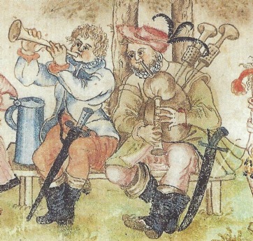With studying bagpipes from the 15th to early 17th centuries, these same issues occur, other than the added problem of there being no surviving originals from this period. Whilst bagpipes are mentioned in a variety of written accounts, on the whole, these tend to be passing references to the instrument resulting in a paucity of fully detailed descriptions. It can therefore be difficult to determine the exact model of bagpipe referred to, how it was tuned or what the range or fingering system was. For example, no-one can ever be 100% certain exactly what a Lincolnshire bagpipe was and what were its defining characteristics.
