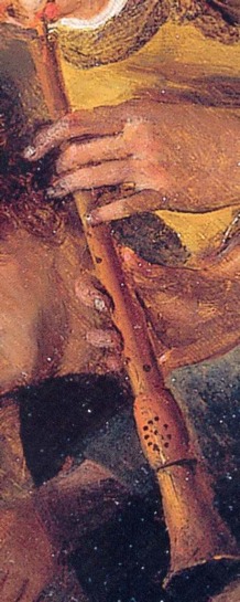 As researchers and instrument makers of historical instruments, Eric and I have to gather information and inspiration from as many sources as possible. In our field of renaissance double reed woodwind instruments, it is fortunate that there are still some extant examples, albeit in museum collections which may or may not have been well cared for over the last few centuries. But we also delve into contemporary accounts and records and there is plenty of iconography out there to help (or hinder!). One gets very skilled at looking at iconography in detail in order to deduce more facts or clues which may help us in understanding how instruments were made and played. However, even with so much available information, reproducing these instruments still requires educated and experienced guess work, coupled with a great deal of trial and error.