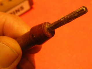 The Goodacre’s Razor is excellent for undercutting these holes, but using it does not maintain a circular hole. Twist drill bits will do the job, but if you use them by hand they tend to grab and leave ragged edges. You can use one in a drill at high speed, but there is the fear that it will damage the back side of the bore or, in the worst case, that it will drill right through the other side of the chanter. And we don’t want that, do we? The hitherto nameless set of tools that I have been using for enlarging small finger holes for nearly 35 years will now be called Looming Pins.