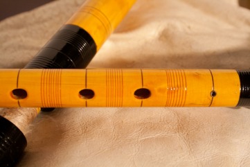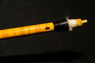 The Gajdanica has seven front holes and one rear hole. The seventh hole, which is at the top of the chanter, is defined as a “flea hole”, in Macedonia it is called mamorka. This hole is decidedly smaller than the other holes and, perpendicular to the hole itself, there is a small internal cylindrical section which contains the final part of the stem of a bird’s quill. The most important feature of the flea hole, in addition to being a tone hole allowing you to play the main scale on the gajda, is to raise a semitone the main positions of gajda allowing more chromatic possibilities. This small hole is found on all the bagpipes throughout the Thracian region but is also characteristic of other types of neighboring instruments, such as the Hungarian duda and, in general, the Eastern European bagpipes. In Macedonia it is particularly important for as well as modulating from major to minor and other scales, it allows the characteristic vibrato.