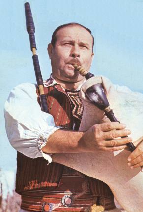 Before the foundation and popularity of Radio Skopje, the gajda was not built at a particular standardised pitch as it did not play with other instruments. Traditionally it was played as a solo instrument, possibly accompanied by the tapan (drum). As well as having different sizes and pitches of bagpipe, there were also different styles of playing the instrument depending on the region. It is known, for example, that the gajda style of the region around Skopje is much more elaborate and rich in ornamentation than the gajda style played in the south of the area. Two people who created a watershed for this instrument were Mile Kolarov and Pece Atanasovski. Mile Kolarov, an excellent kaval player, also played the gajda, having studied with Todor Boŝkov, the father of the famous singer, Vaska Ilieva. Born in 1927, Petre Vasilev “Pece” Atanasovski came from the village of Dolneni (Prilep). As a child he was a sheperd and receiving only elementary education as his family could not afford more. His family were excellent musicians of gajda and ŝupelka and Petre began playing musical instruments when he was only five. From 1944 to 1947 he served in the army before moving to Skopje where he worked as a clerk for a clothing factory. In this period he even managed to complete his school studies and start his studies at a music school.