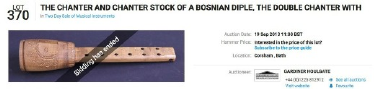 (although it was catalogued as being from Bosnia, he later found out it was a type found in Serbia). Being a collector, he thought that it would be an interesting item to own and consequently bid on the lot and was successful in winning it. It wasn’t necessarily an expensive instrument and it was just the chanter but it was a good example of its type and Daniele was really pleased to have it in his collection.