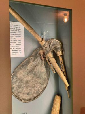 On the Sunday there was a trip to the local museums. First, a small folk museum where Hans and Olle talked about the Swedish bagpipes as well as playing some tunes. The main focus, however, was the so-called Bäsna-Pipa, one of the few sets of Swedish bagpipes which has survived complete with the bag, dating from the 1800s. After this, we had a bagpipe procession, playing some tunes while walking to the next stop, an open-air museum with three very old timber buildings, two from the 1800s and one dating to the 1600s (if I remember right!). There, a folk music demonstration concert was held, with various groups and musicians playing traditional Swedish instruments and tunes. We all played together as a big group, but also my good friend David and I played our historical Swedish bagpipe copies. I had made these, based on the bagpipe from Nås, and it was possibly the first time two historical Swedish bagpipe models had been played together in 150 years, if they ever had been played together!