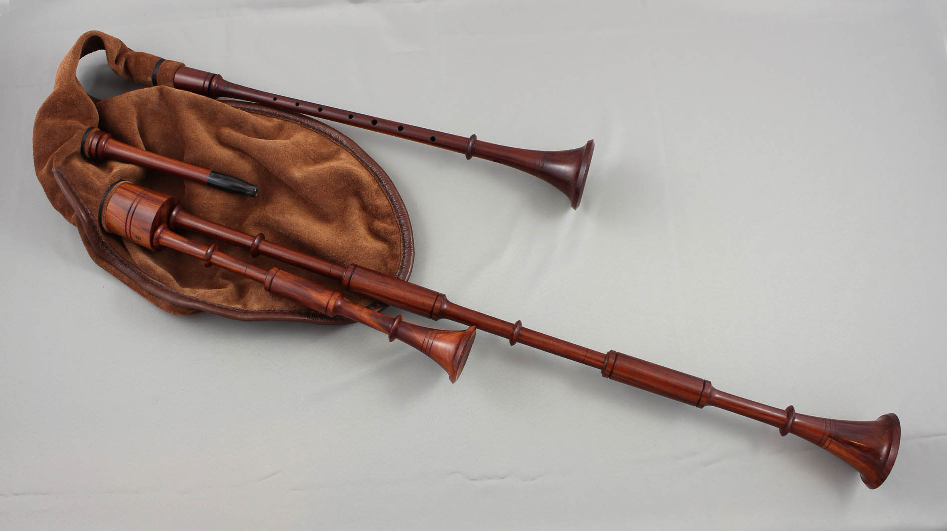 Various makers have reconstructed medieval pipes. Julian Goodacre makes a Greatpipe, with loud conical chanter and a long, eye-catching, flared drone, based on a 15th century illustration of the Miller.